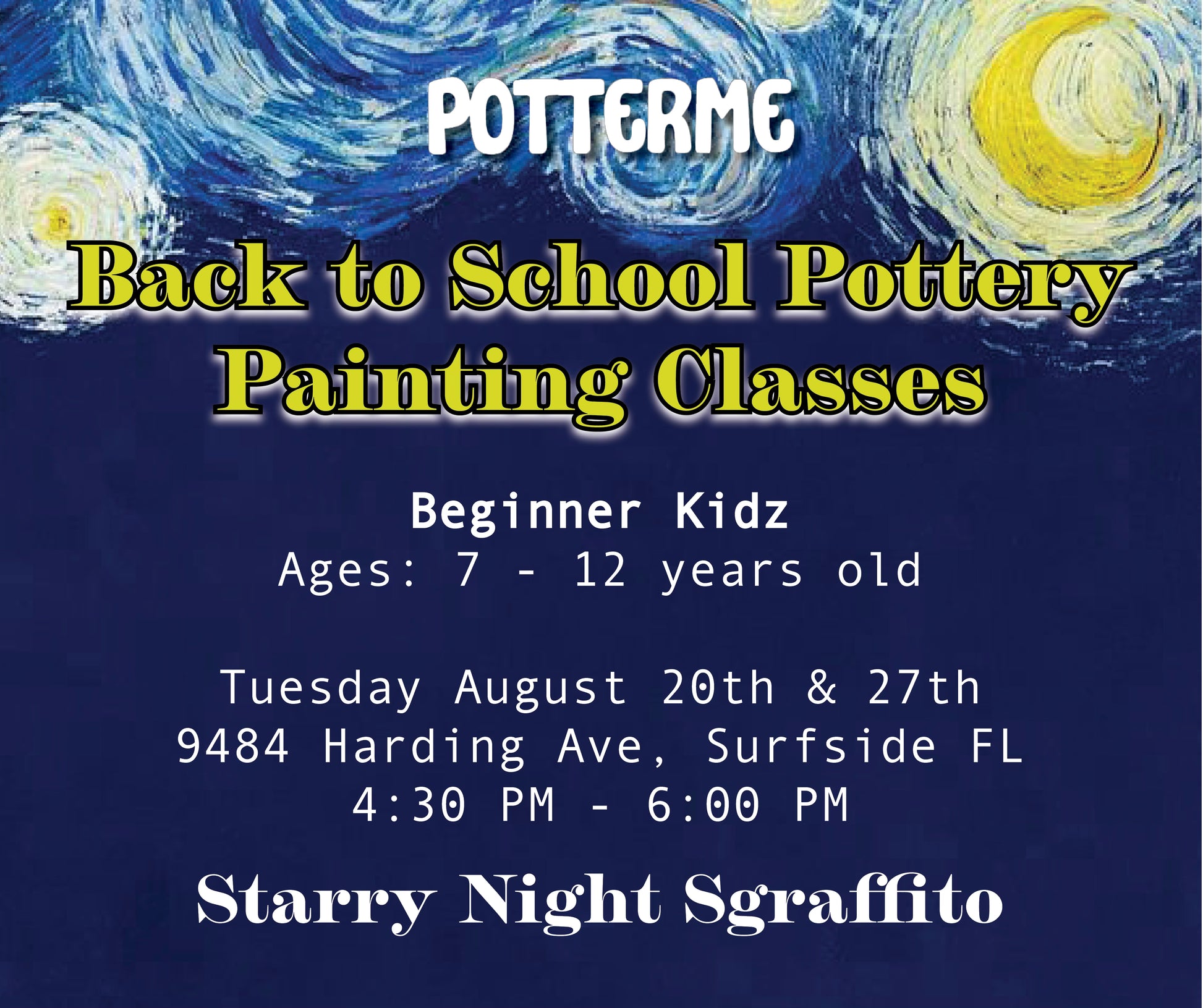 Join us for a skillful group art class where kids will learn the decorative technique of sgraffito by making their very own interpretation of Vincent Van Gogh's The Starry Night. All supplies included and pottery is ready for pickup in one week.